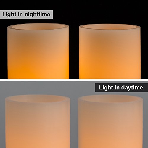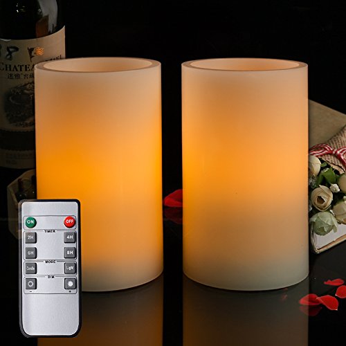 - ✪REAL FLAME-EFFECT PILLAR CANDLES: Real wax material and flickering effect make the flameless pillars so realistic that practically indistinguishable from traditional burning candles. Package include: 2 x LED pillar candles; 1 x remote control. These LED fake candles can be widely applied to home decorations, birthday, bars, hotel, parties, holidays, wedding, or other occasions.