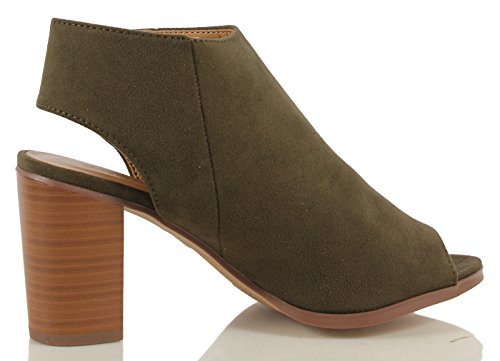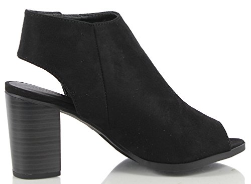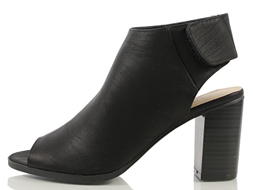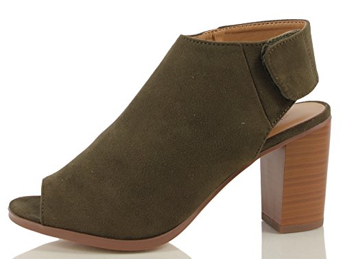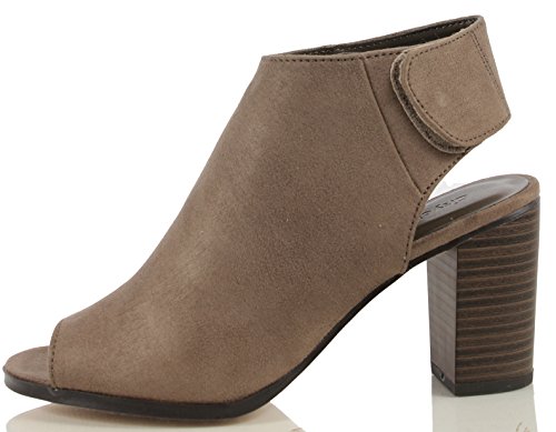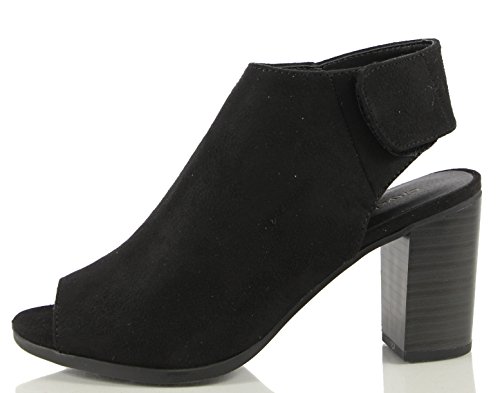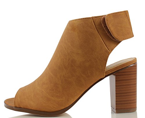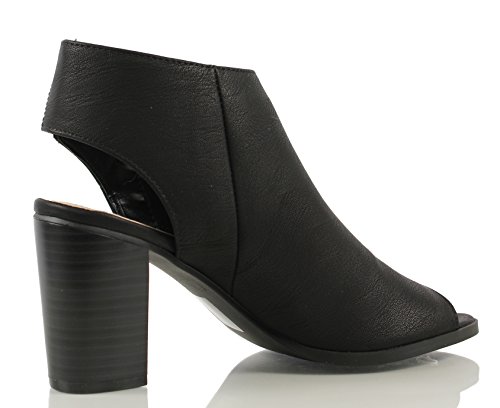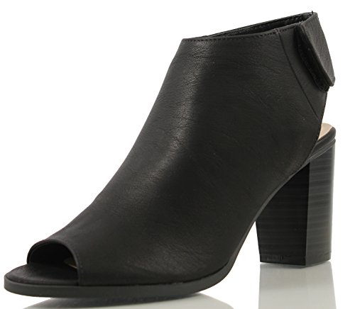 Product Description Rock these ankle boot how ever you like! Features include faux leather, open toe, slingback with velcro closure, stacked 3 1/4" Heels, lightly padded cushion, and non-skid rubber soles. 0