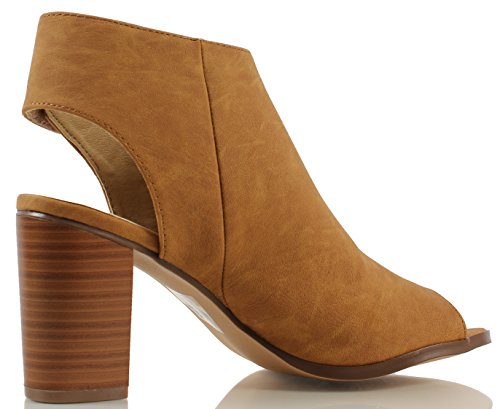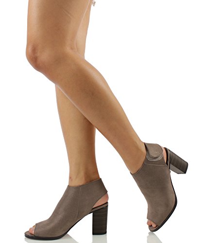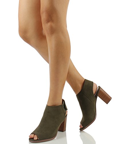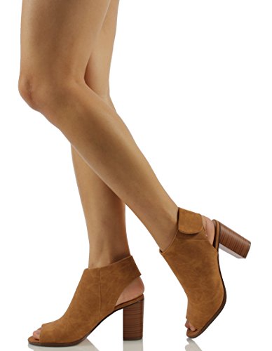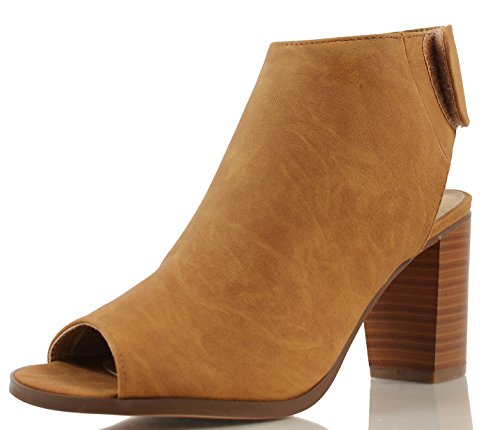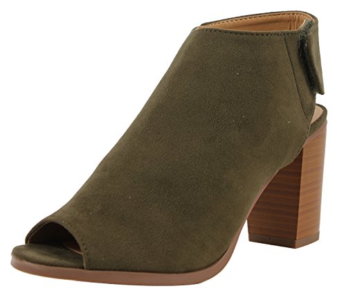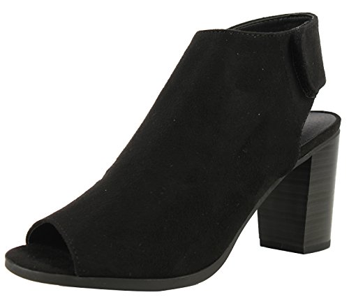 City Classified Women's Webcam Faux Leather Peep Toe Slingback Stacked Heels