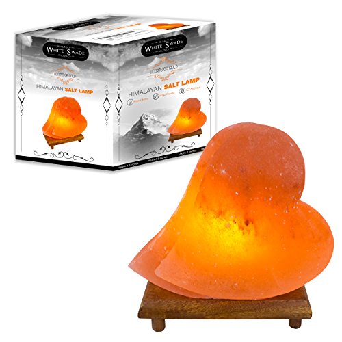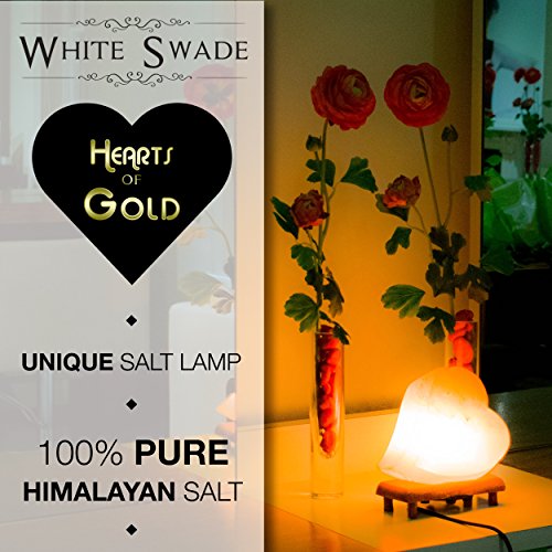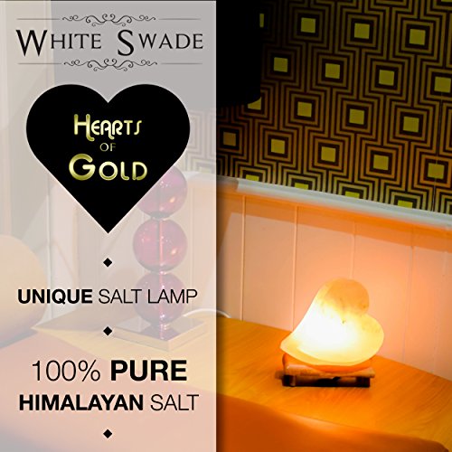 WhiteSwade Iconic 'Hearts of Gold' Himalayan Salt Lamp with Neem Wood Base, 6ft UL-Approved Dimmer Switch Cord and 15W Bulb. Authentic Himalayan Rock Crystal