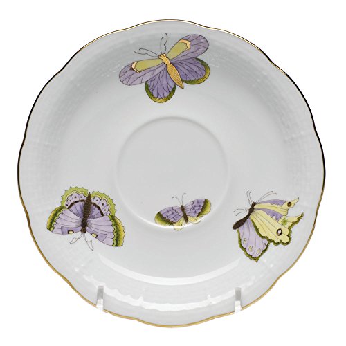 Studio : Herend Publisher : Herend Product Description Herend China Royal Garden Tea SaucerRoyal Garden comes in 3 different motifs: full motif with peonies and butterflies, just peonies, and just butterflies. The 5 piece place setting we are introducing and other pieces of the introduction is a combination of these. How appropriate that in commemorating the 160th Anniversary of the Queen Victoria pattern, the Herend manufactory has taken all the well-known elements of its beloved pattern and created a modern interpretation with Royal Garden. Reflecting a fresh new color palette of lavenders and greens. 0