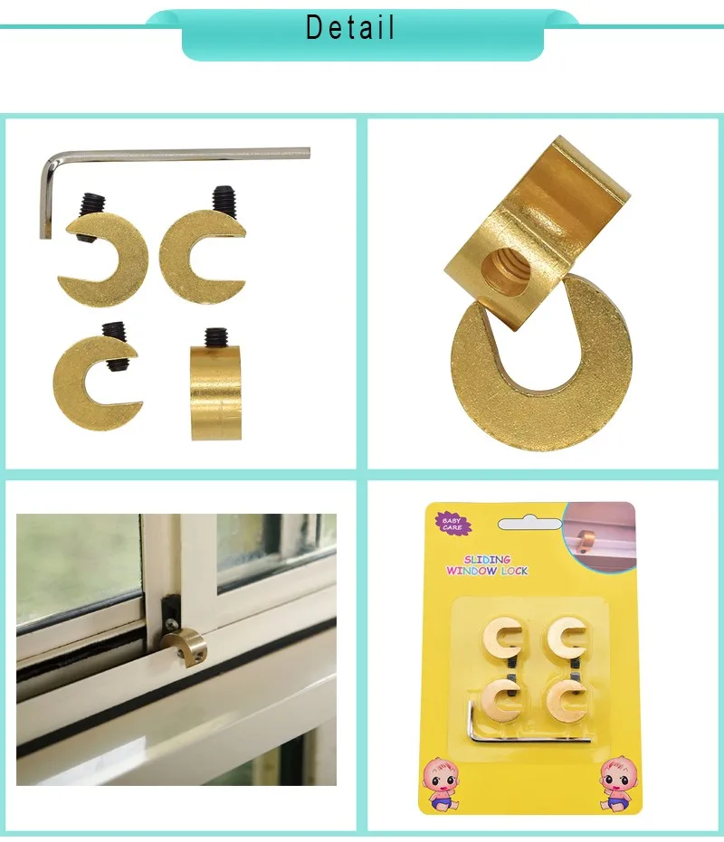 item name:4 Pcs Per Lot Adjustable Brass Baby Safety Sliding Window Lock