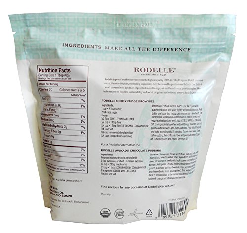 For over 80 years, Rodelle baking ingredients have been used by professional bakers. This cocoa powder is 100% USDA certified organic cocoa processed with alkali.