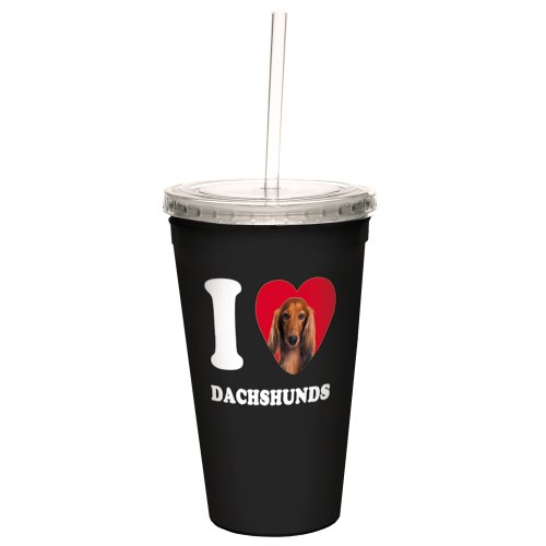 Tree-Free Greetings CC35038 I Heart Dachshunds Artful Traveler Double-Walled Cool Cup with Reusable Straw, 16-Ounce