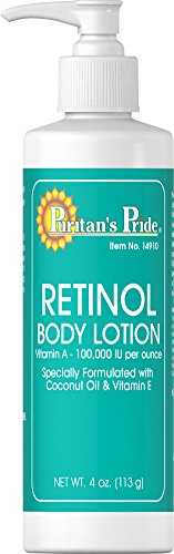 -. Binding : Misc. -. Brand : Puritan's Pride -. EAN : 0885280325193 -. Feature : We are the manufacturer and the only authorized seller of this product. / This product has been made with the highest quality ingredients available. / Over 40 years in business and 19 million customers served. / Satisfaction guaranteed or your money back. -. Label : Puritan's Pride -. Manufacturer : Puritan's Pride -. Model : 14910 -. MPN : 14910 -. PackageQuantity : 1 -. PartNumber : 14910 -. ProductGroup : Beauty -. ProductTypeName : BEAUTY -. Publisher : Puritan's Pride -. Studio : Puritan's Pride -. Title : Puritan's Pride Retinol Body Lotion (Vitamin A 100,000 IU Per Ounce)-4 Oz. Lotion -. UPC : 766443149101