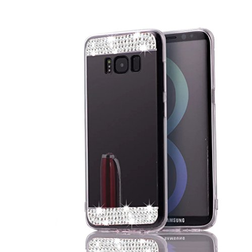 Galaxy S8 Plus Case,Inspirationc Beauty Luxury Diamond Hybrid Glitter Bling Soft Shiny Sparkling with Glass Mirror Back Plate Cover Case for Samsung Galaxy S8 Plus--Bling Black