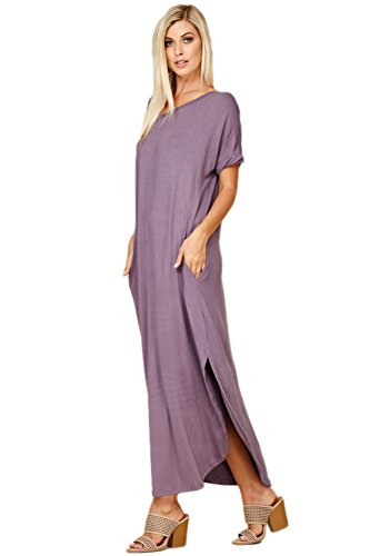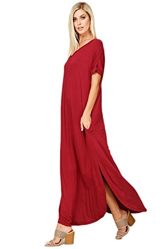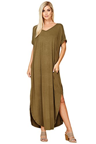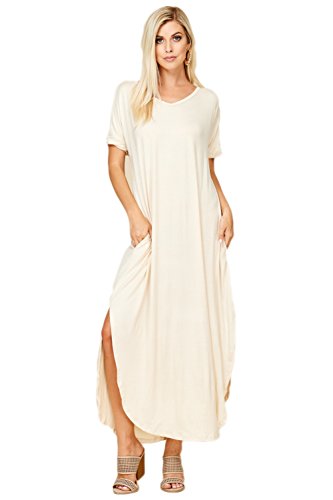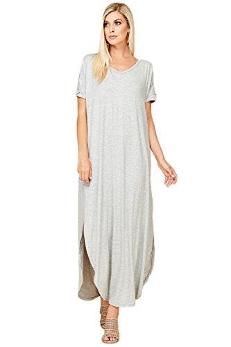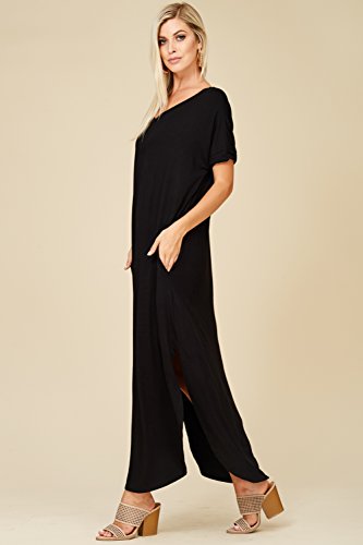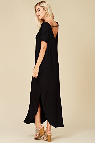 Short Sleeve with Twisted Band at Hem, V-neckline, Open Back Cutout, Maxi Length with High Slit Curved Hemline, Loose Fit