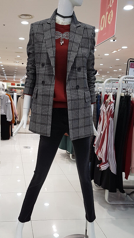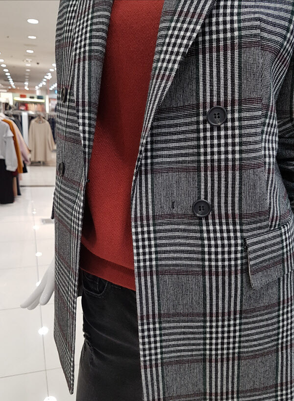 기본핏에 날씬 재킷이랍니당와인컬러 믹스와 세련한체크에 요아이ㅎ핫~아이템으로 득템하셔요^^더블버튼디테일에 싱글핏이랍니당날씬하게 코디 좋으실듯하네요