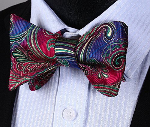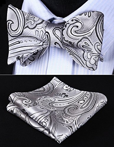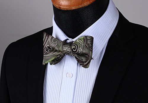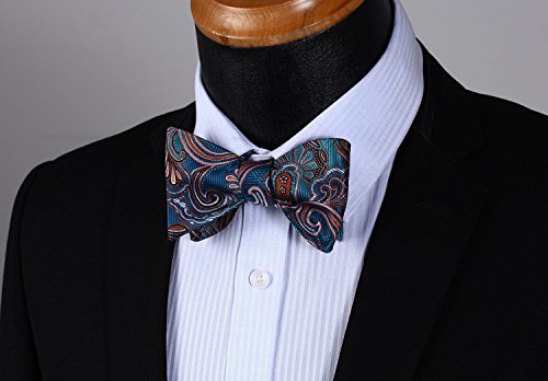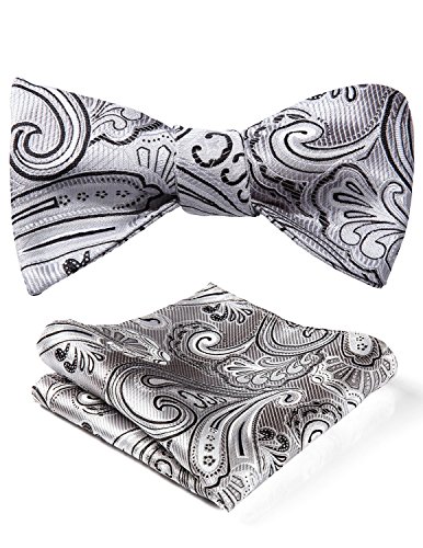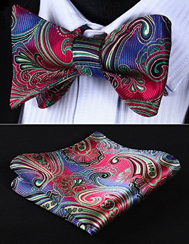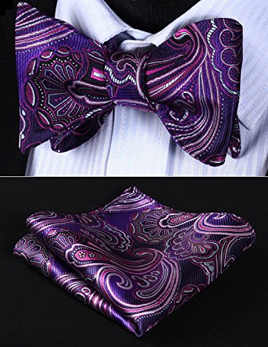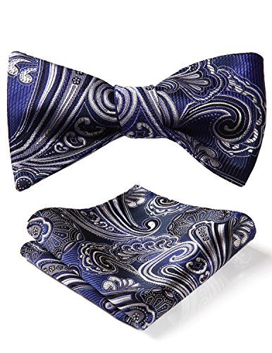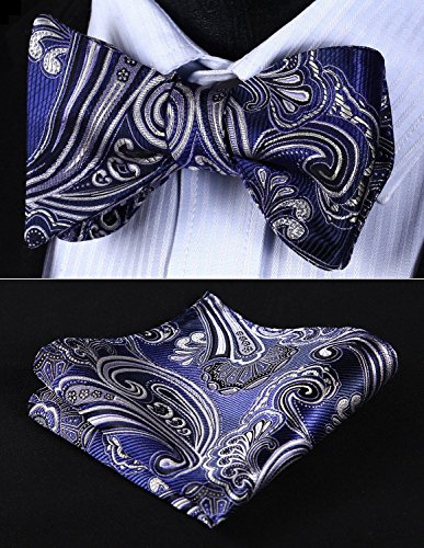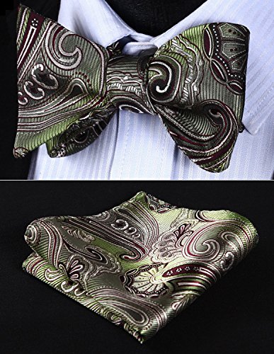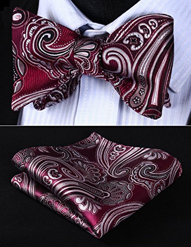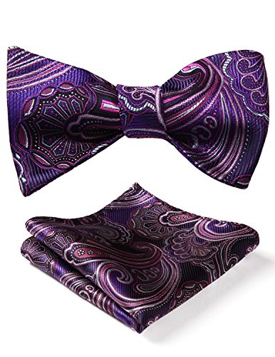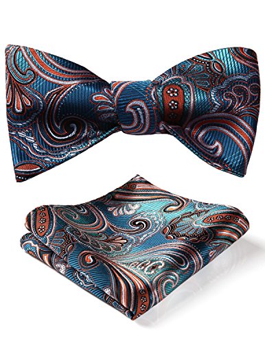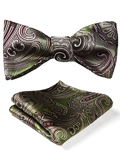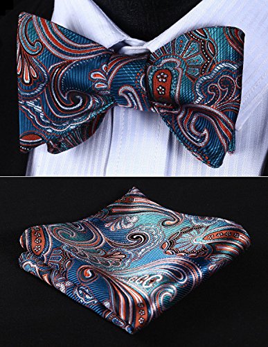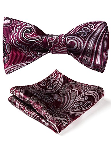Hisdern Fliege und Einstecktuch fur Herren, Paisley-Muster, Jacquard, fur Hochzeit/Party, Set, quadratisches Tuch