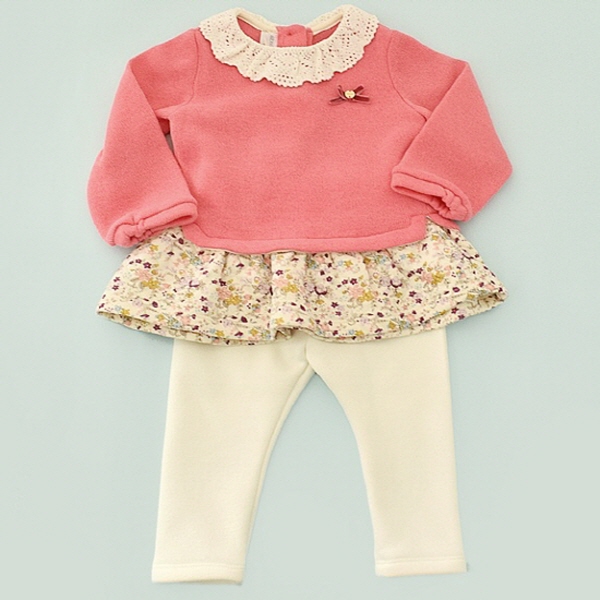 사랑스러운 느낌을 준 티셔츠와 바지 상하복입니다.
