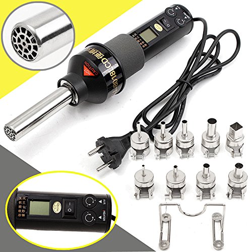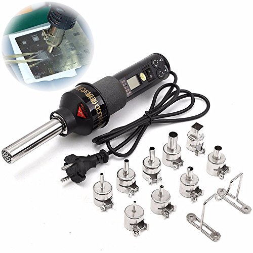 Diymore 220V 450W LCD Display Hot Air Heat Gun Soldering Station + 9x Nozzles for Electronics