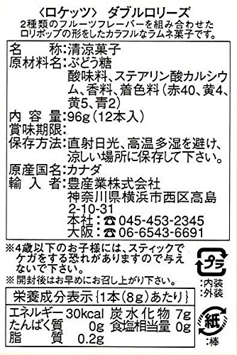 原材料:ぶどう糖/酸味料、ステアリン酸カルシウム、香料、着色料(赤40、黄4、黄5、青2)