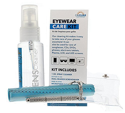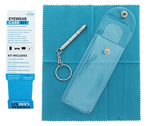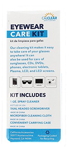 Studio : Cal Optix Publisher : Cal Optix Product Description Something every eyeglass owner needs! This eyeglass cleaning and repair kit includes a special eyeglass cleaning solution in a handy, colorful 1 oz spray bottle, a matching microfiber cleaning cloth, and a mini-screwdriver just the right size for those tiny screws that always seem to be working their way loose. All of this comes neatly packed in a handy vinyl carrying case that fits compactly in your purse, desk drawer, glovebox, or just about anywhere. The mini screwdriver also attaches to a keychain for convenient repair anywhere you go! In addition to repairing your eyewear, this screwdriver can also be used for repairing or replacing batteries in small electronics and toys. Choose from six bright, fun colors: Orange, Green, Blue, Pink, Purple, or Clear. At this price you can afford several so you will always have one handy! Small size and color choices make these a great stocking stuffer for all of the eyeglass wearers in your life! Hand packed with care in Dallas, Texas. 0