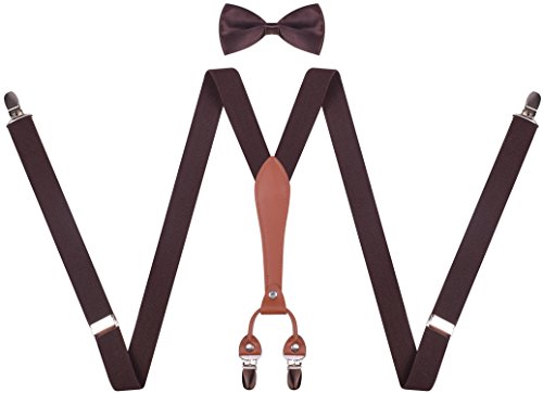 Braces suspenders and bow tie for kids are easy to clip.