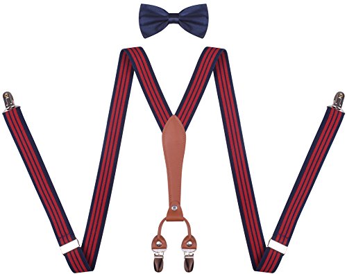 Bow tie suspender set clip on braces has striped styles and basic styles.