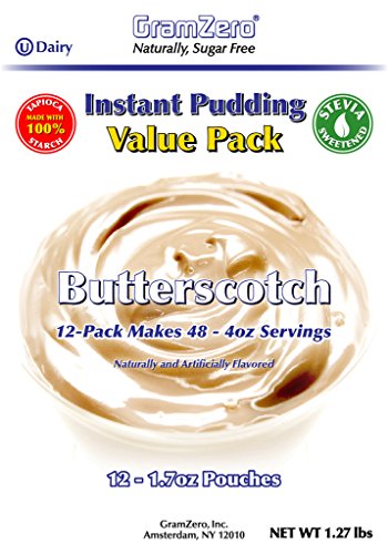 GramZero Butterscotch Pudding Mix, 12/16 oz Yield (Makes 48 - 4 oz servings), Stevia Sweetened, SUGAR FREE