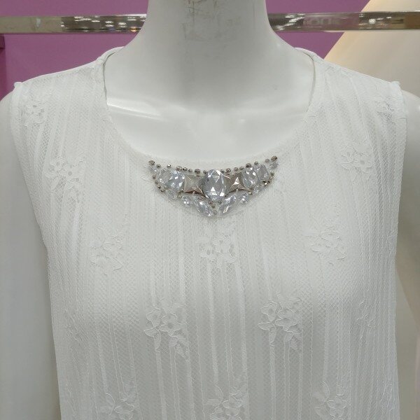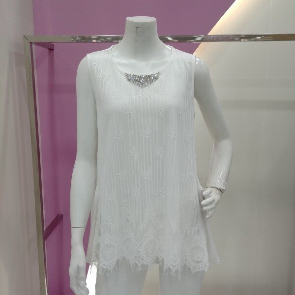 큐빅으로 포인트를 준 레이스 민소매 블라우스.A라인으로 하나만 입어도, 레이어드 해 입어도 멋스럽게 연출되는 민소매 블라우스.정사이즈 구매.