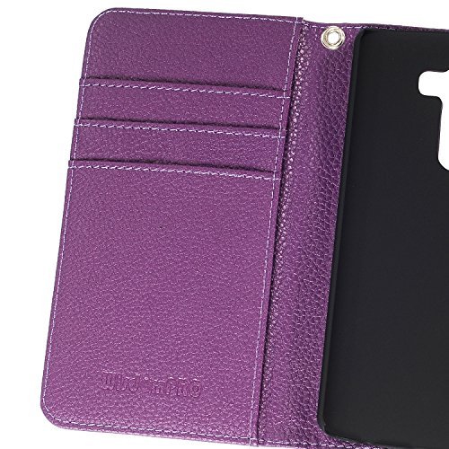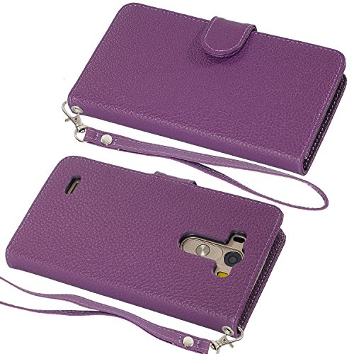 LG G3 Wallet Case, LG G3 Case, Wisdompro® Premium PU Leather 2-in-1 [Folio Flip Wallet] Protective Case Cover Built-in Credit Card Holder/Slots and with Wrist Lanyard for LG G3 - Purple