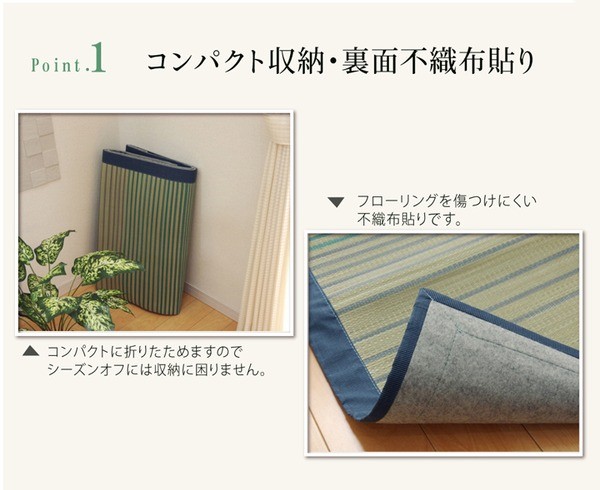 【素材】表地=い草 裏地=ポリエステル100%(不織布) ※メセキ織ポリエステル80%、綿20%※メセキ織 ヘリ=ポリエステル80%、綿20%