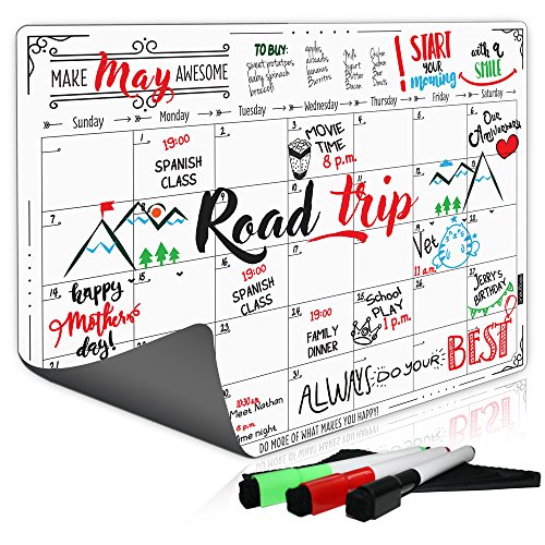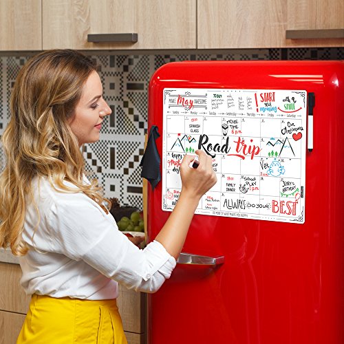 ♥ GET COMPLIMENTED! Brighten your kitchen and office with this elegant erasable calendar. Simple and minimal, with great details and motivational quotes, the unique design will catch all eyes. Not only your fridge or desk will look great, but your kids will have a lot of fun doodling on it.