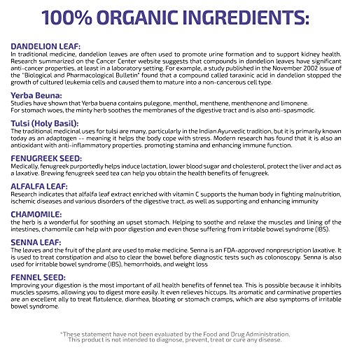 PREMIUM QUALITY MADE IN THE USA - This great tasting natural detox tea focuses on detoxifying and digestion. Purify your system and increase liver function - restore gut health and stimulate a gentle laxative effect.