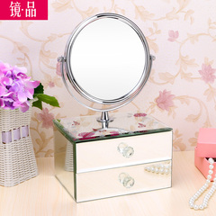 精品 高档不锈钢化妆镜梳妆盒化妆品收纳盒首饰盒便捷台式镜子