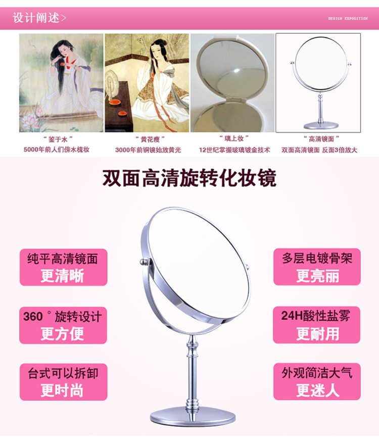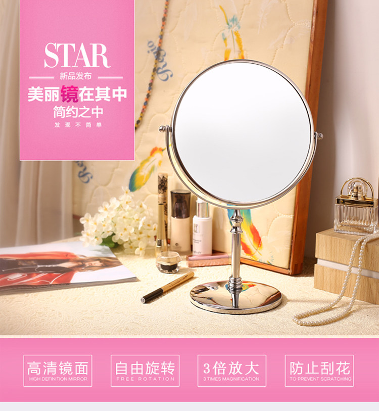 高清台式化妆镜欧式镜子双面梳妆镜结婚公主镜随身便携美容放大