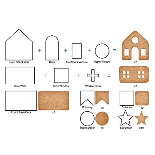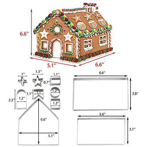 - 3D Gingerbread House cookie cutters: Gingerbread House Kit Contains 10 parts,such as Wall, Door, Window Cross,Upper Window, Floor,Chimney, Round decor and Star Decor. You can make an adorable gingerbread house this season with loved ones