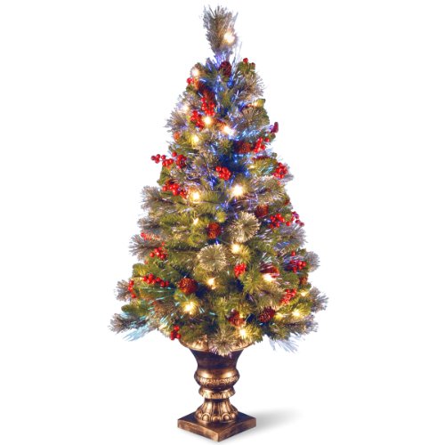 National Tree 4 Foot Fiber Optic Crestwood Spruce Tree with Cones, Glitter and Red Berries in Gold Pot (SZCW7-105L-40)