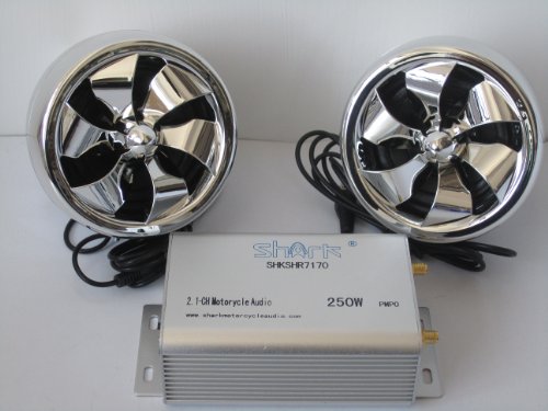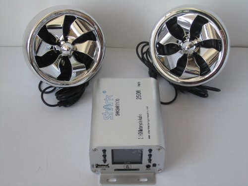 Shark Motorcycle Audio 250W 2 Speakers plus FM radio with 2 Remotes (Wired/Wireless) SD AUX LCD Display + External Antenna Bluetooth