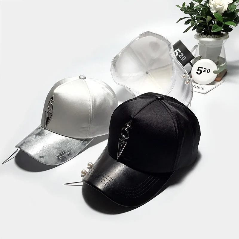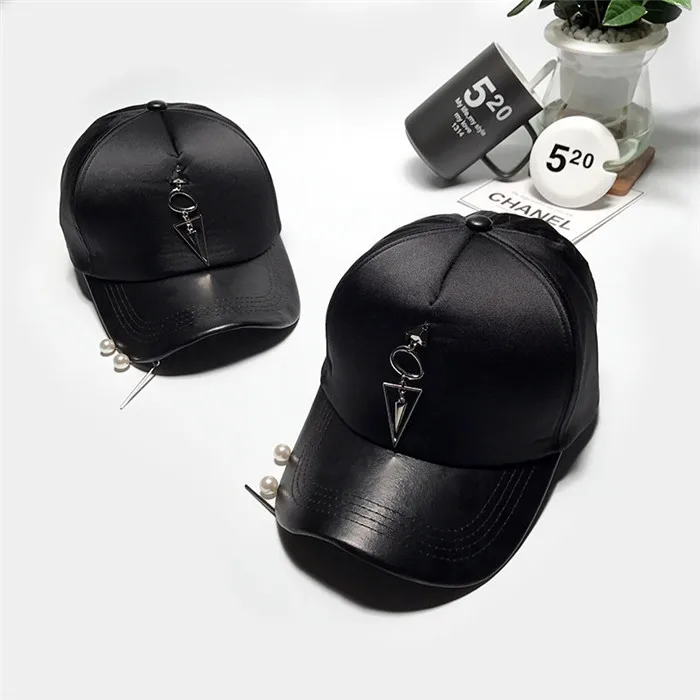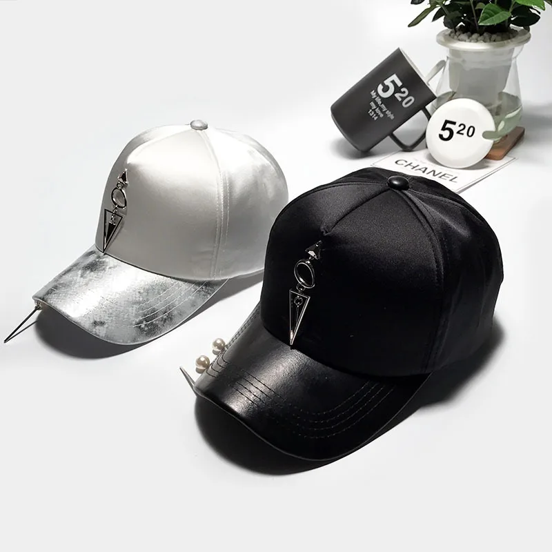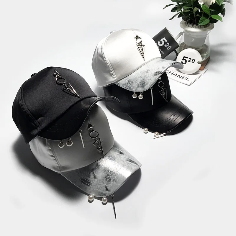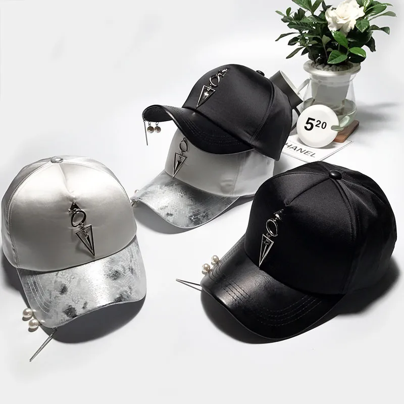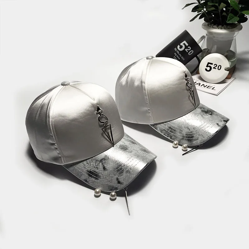 Pattern type::Pearl Accessories Iron Ring Hats Silvery Baseball Caps