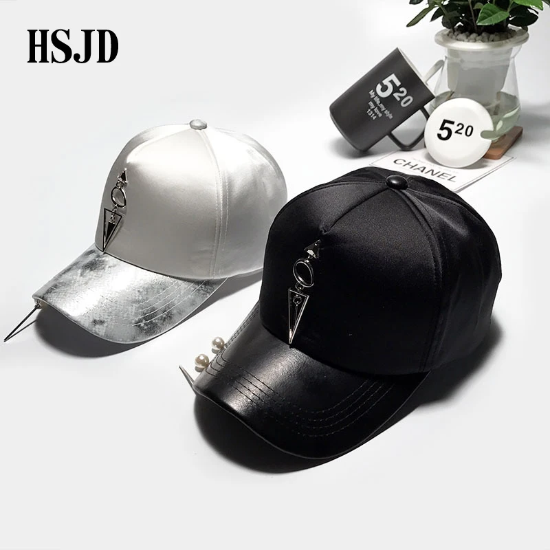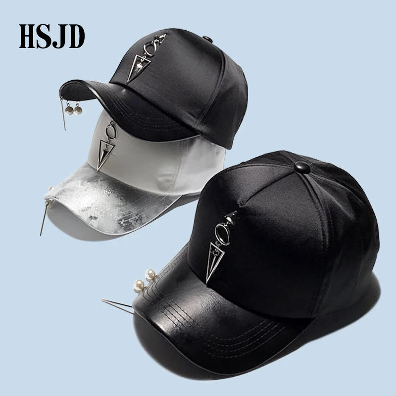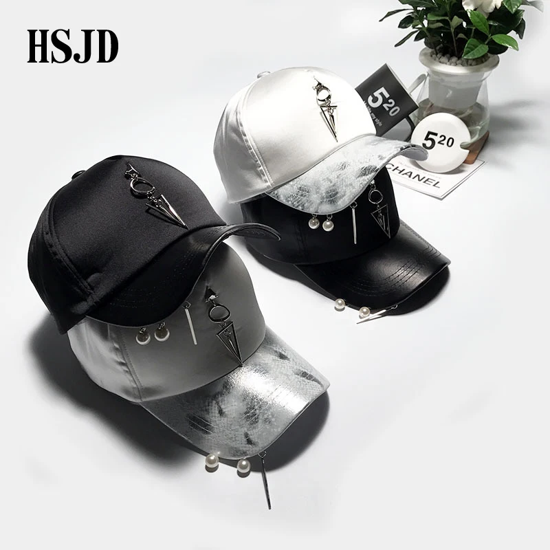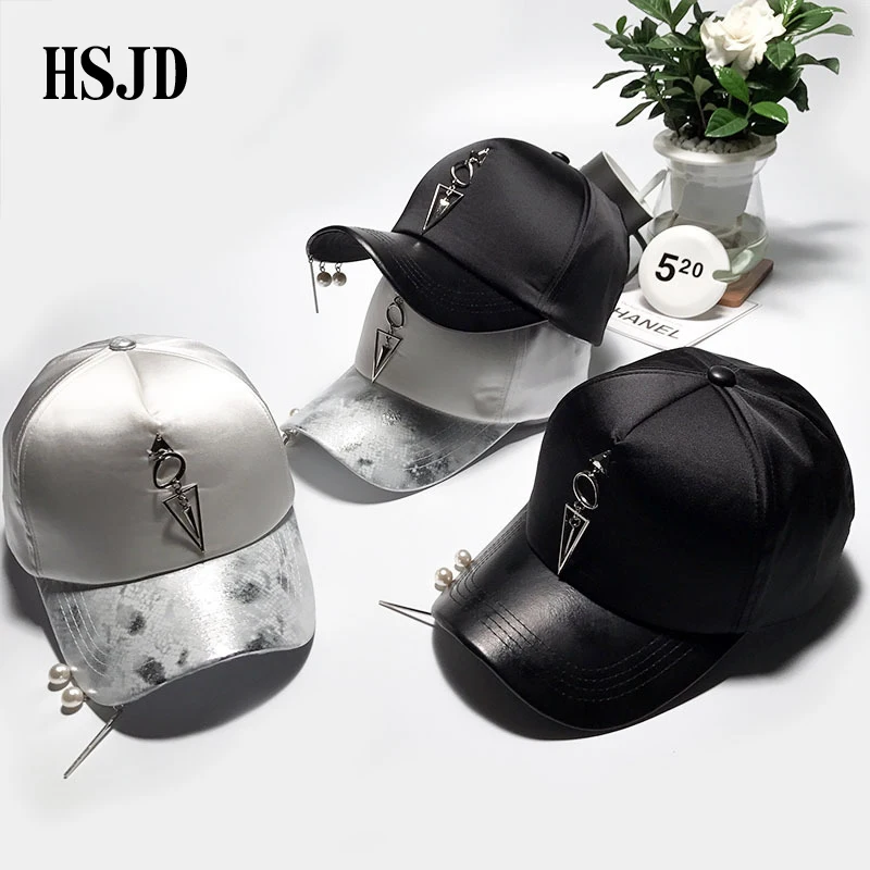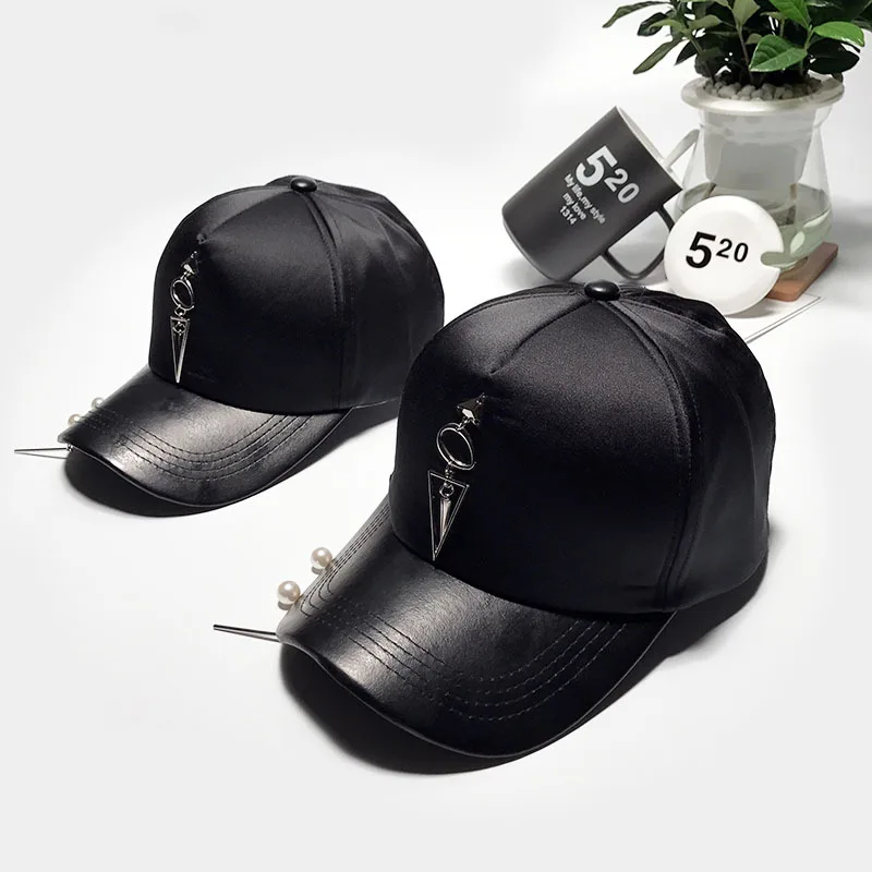 Pattern type::Pearl Accessories Iron Ring Hats Silvery Baseball Caps