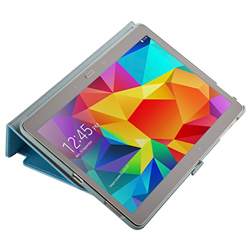 Auto wake/sleep. Integrated magnets wake and sleep Galaxy Tab S 10.5" on open and close.