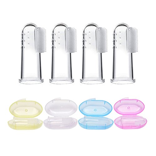 -. Feature : WHAT YOU WILL GET: 4 pcs soft latex finger toothbrush and 4 case(white,blue,pink and yellow case). Each toothbrush is packed in a delicate plastic case, sanitary and portable. / FOOD GRADE SAFE MATEIAL: These baby toothbrushes are made from 100% food grade silicone; BPA, BPS, PVC, lead and phthalate free.Safe and soft material leaves your child's mouth free from mechanical damage,so you can use to your little ones with peace of mind. / BABY ORAL HYGIENE: Soft finger brush for cleaning your baby's teeth, tongue and teeth to form a good health habit. The finger brush can also be applied as oral massager or teether since the material is safe and soft. / PUBLIC FINGER SIZE: You do not have to worry about finger size problems, because our product design is suitable for all sizes of adult fingers, easy to use and convenient. / 100% NEW AND HIGH-QUALITY: Our products have first-class quality, you can rest assured to buy. If you have any questions after the purchase please contact us promptly, we will give you a satisfactory answer within 24 hours.