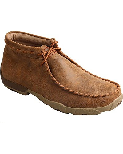 Studio : Twisted X Publisher : Twisted X Binding : Apparel Product Description Mens Twisted X Shoes: Mens Twisted X Casual Shoes. Twisted X brings you these men's driving moc casual shoes from their Red Buckle Collection. You'll feel like your still wearing your slippers. The outsoles of these men's casual shoes are built from a special, dual-lasted construction that provides maximum flexibility. Other features include an EVA midsole, a Round Moc toe, a leather upper, a 50K rubber outsole making them slip resistant and the moisture wicking, antibacterial washable molded footbed will give you all day comfort. You'll get maximum stability from the one piece XSD insole. These lace up mocs have a padded collar with lacing details. Twisted X run a half size large, order a half size smaller than normal. MDM0049 0