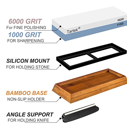 Tartek Knife Sharpening Stone-1000/6000 Grit Japanese Sharpener Waterstone-Nonslip Base,Angle Guide