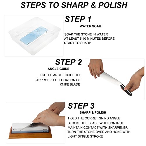- ✔SHARPENING STAND: Come with non-slip bamboo base for holding the stone and preventing the sharpener whetstone slipping off . And the silicon rubber keeps the stones inside sturdy.The durable angle guide helps to sharpen and polish at correct angle, easy and safe to use even for green hand.