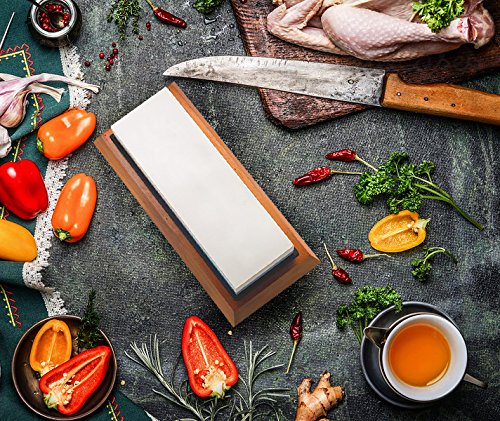 - ✔COMBINATION WHETSTONE : Made of premium double sided Japanese grit stones (#1000/#6000). The #1000 side is sharpen your extremely dull blades, while #6000 grit is best for polishing the edges. You can get the knives as sharp as new with our sharpener stone.