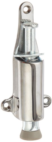 Rockwood 459.26 Brass Spring Loaded Plunger Stop, #8 X 3/4" OH SMS Fastener, 1-7/8" Projection, 1-3/8" Base Width x 5-3/8" Base Length, Polished Chrome Plated Finish