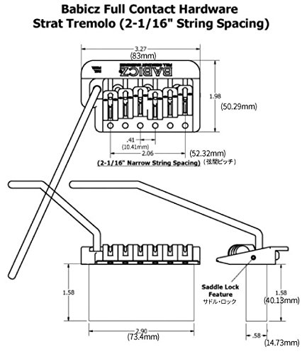 Studio : Babicz Publisher : Babicz Binding : Electronics Product Description The "full contact hardware" direct coupling system for "Stratocaster" style tremolo bridges directly replaces the entire existing bridge. The "ECAM" saddle design means unwanted spaces between the bottom of the saddle and the top of the tremolo unit are eliminated. The Babicz "full contact hardware" replacement tremolo system for "Stratocaster" style guitars offers unmatched stability, increased sustain, dramatically improved fullness and tone along with complete adjustability. Includes instructions, complete FCH6 start tremolo assembly and components, tremolo arm and action adjustment hex wrench. 0