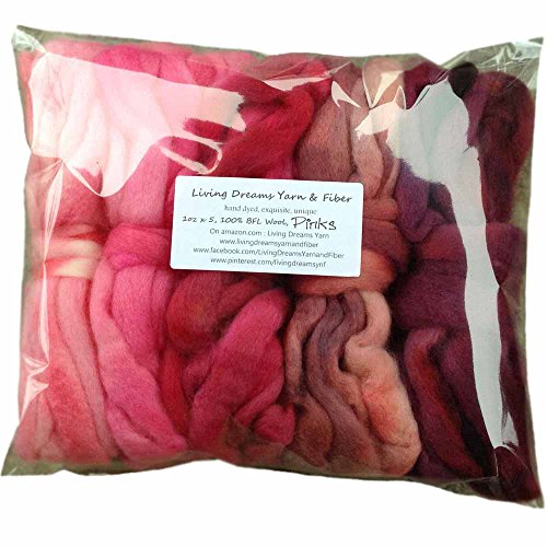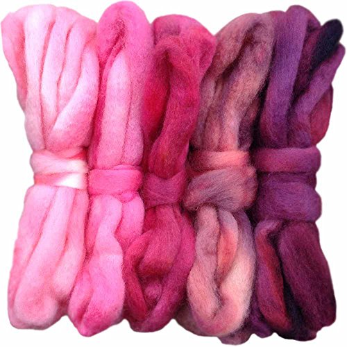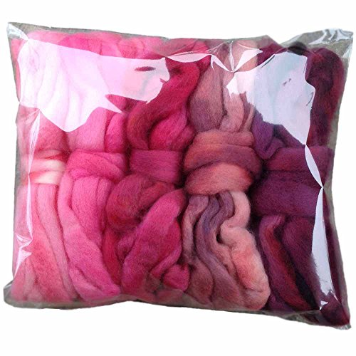 SPINNING FIBER Super soft BFL Wool Top Roving drafted for hand spinning with drop spindle or wheel, felting, blending and weaving. Variegated hand dyed mini skeins. 5 Ounce DISCOUNT PACK, Pinks