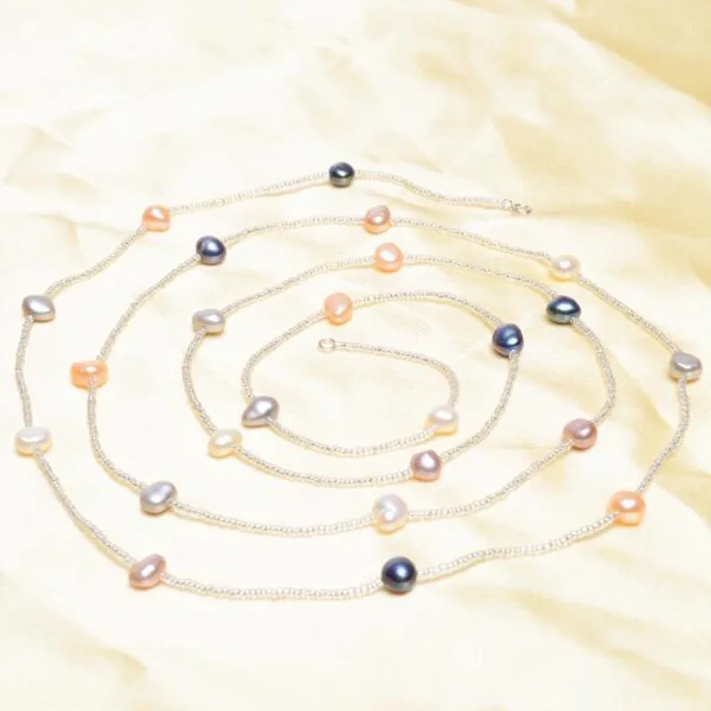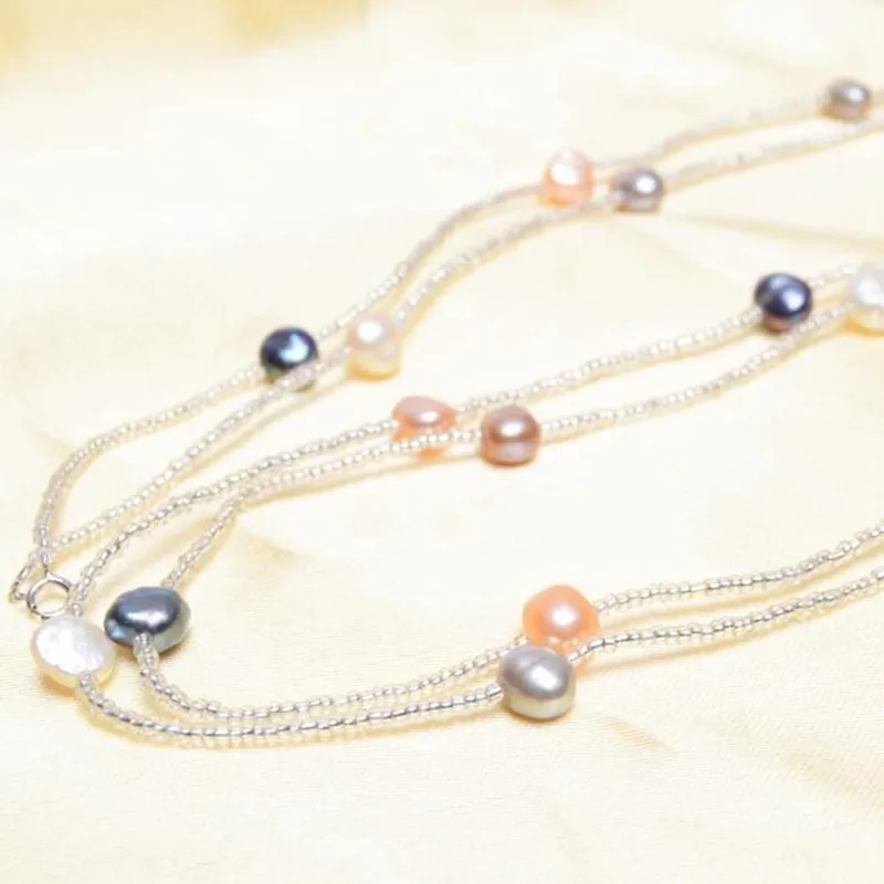 ASHIQI Multi Color Baroque Pearl Necklace 7-8 mm Natural Freshwater Pearl Long Necklace 925 sterling silver clasp Beach Style