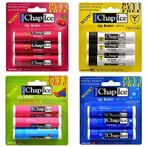 Chap-Ice® assorted among Cherry, Watermelon/Blueberry, Original and Moisture.