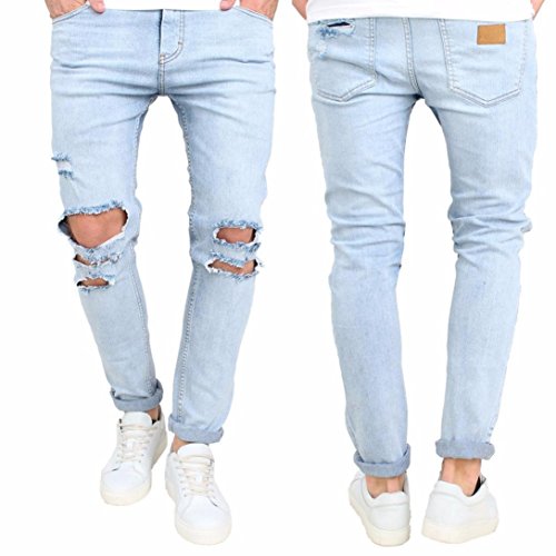 -. Title : Leedford Ripped Holes Jeans,Men's Skinny Fit Blue Denim Jean,Mens Stretch Comfy Rock Biker Skinny Runway Distressed Ripped Denim Jeans