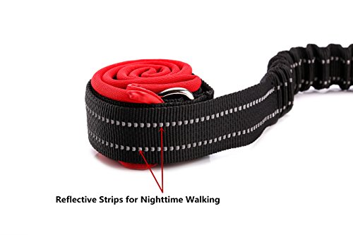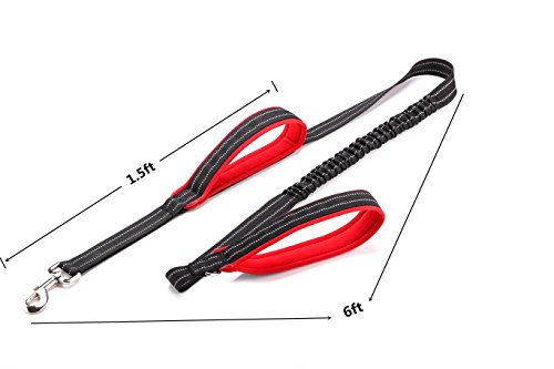 The length of the bungee leash part is range from 11.8' to 21.8', so the full length of the dog leash will be 6 foot. It is enough long to train your dog or take it walking and running. Min Length: 5 feet Max Length: 6 feet Width: 1 inch Material: Nylon webbing with 2 reflective strips. Money Back or Replacement Guarantee Our PowPetie dog leash come with lifetime warranty and friendly customer service. If for any reason, our dog leash do not meet your expectations, the team would offer you a replacement or 100% money back. No return hassle. 0