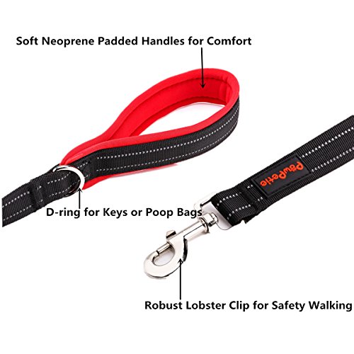 Double soft and comfortable padded handles will make you easy to control the dog. Premium stainless steel D-ring can hold keys, poop bags or small LED light.