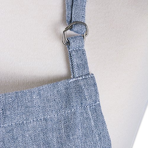 DII Cotton Adjustable Chambray Bib Chef Apron with Pockets and Extra Long Ties, 32 x 28",Kitchen Men & Women Apron for Cooking, Baking, Gardening, BBQ-Blue