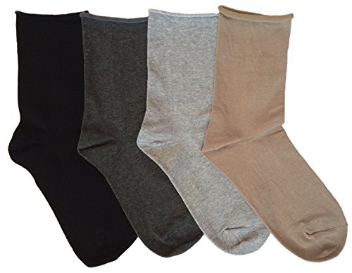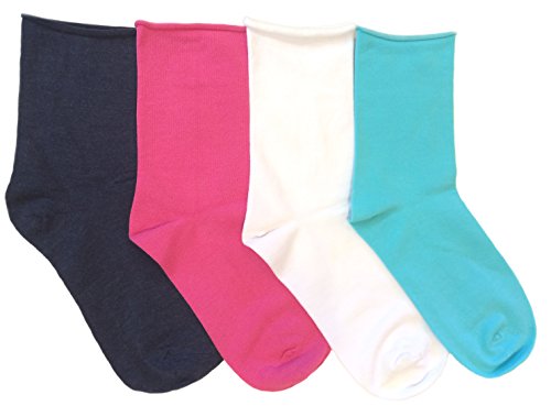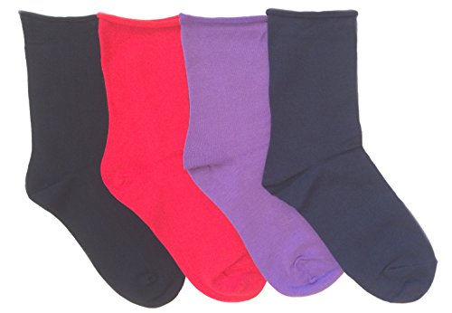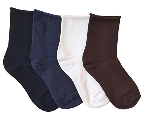 | K. Bell Women's Non-Binding Relaxed Roll Top Crew Socks, 4 Pair |