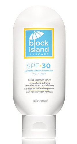 -. Title : Block Island Organics - Natural Mineral Sunscreen SPF 30 - Broad Spectrum UVA UVB Protection - Non-Nano Zinc - Lightweight Non-Greasy Sunblock - EWG Top Rated - Non-Toxic - Made in USA 3.4 FL OZ