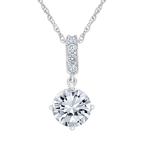 Round Created White Sapphire Sterling Silver Pendant